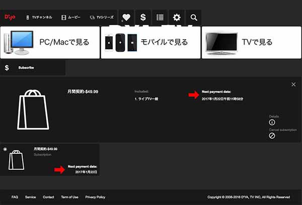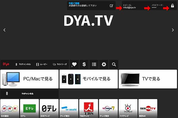 Eメールアドレス、パスワード、氏名を登録した後にクレジットカード情報を登録すると直ぐに日本のテレビ番組が視聴出来ます。
