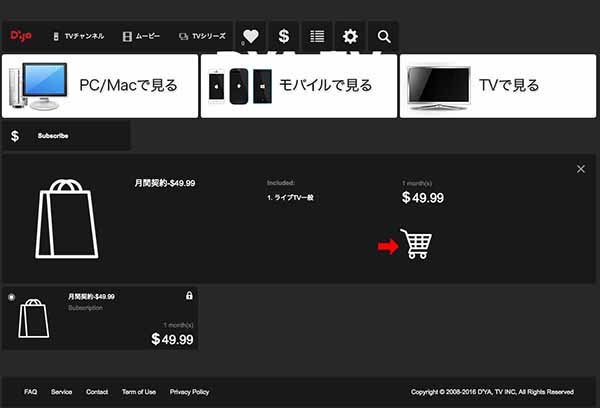 Purchase Offersから月間契約$49.99(青ボタン)アイコンをクリックする。